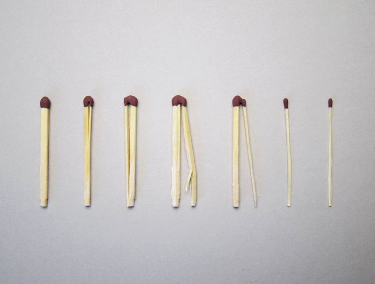Daarnaast blijven lucifers geliefde rekwisieten bij rituele en religieuze gelegenheden. Misschien omdat ze de schijn van tijdloze natuurlijkheid bieden, met hun analoge vlam en oergeur van brand. Maar waarschijnlijk ook omdat het afstrijken van een lucifer zelf een bescheiden ritueel is, waarbij licht en warmte ontstaan ten koste van onomkeerbare destructie. Elke lucifer gaat per slot van rekening te gronde aan zijn eigen functie. Dat maakt het afstrijken van een lucifer tot een gewichtig moment. Hoe vluchtig en nietig ook, het is een offer. Een drama van dertig seconden met alles erop en eraan: de opmaat van het afstrijken, de belofte van de ontbranding, de onvermijdelijke vertering die volgt als het vuur het hout verslindt, de catharsis van de bevrijding van licht en warmte, de ondergang als het materiaal is uitgediend. Maar zonder einde geen begin.