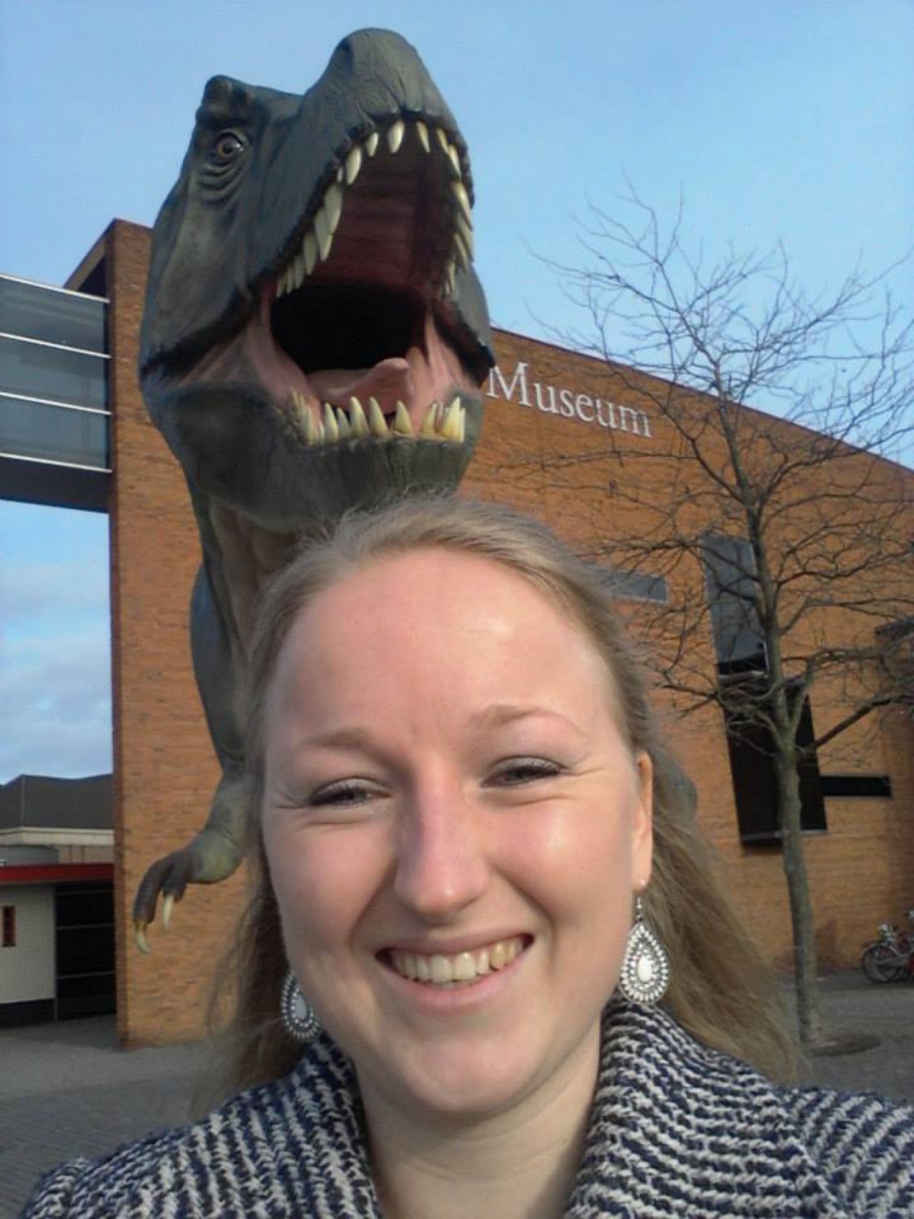 Voor het Limburgs Museum in Venlo werd vorige week een levensgroot model geplaatst van een T. rex. Het monster is de blikvanger van de tentoonstelling Dino Experience, die tot en met 26 oktober aanstaande te zien is. Het monster is momenteel de meest gefotografeerde dame in Venlo. Bijna continu circuleren fotografen om haar heen om met hun smartphone een opname te maken. Een bijzonder fenomeen, dat typisch is voor deze tijd van de snelle, digitale foto. Het Limburgs Museum stelt iedere maand van februari tot en met juni een prijs beschikbaar (een gezinskaart ter waarde van 33 euro) voor de leukste, spannendste of origineelste selfie met Truui de T. rex.
