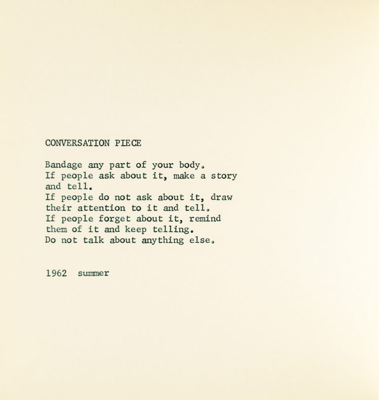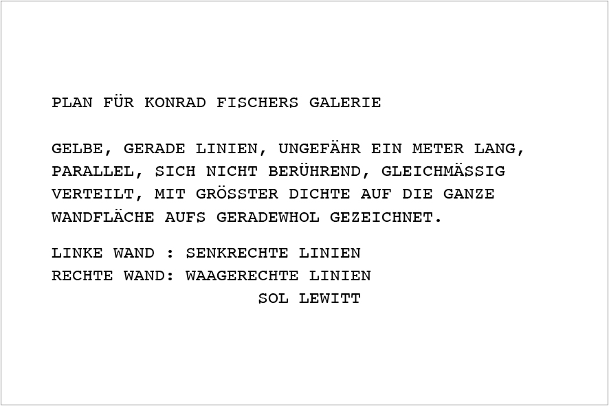 Het is kunstenaars eigen om telkens een andere interpretatie te geven aan de dingen die we kennen, of denken te kennen. De instructies in deze verzameling kunnen moeilijk worden teruggebracht tot een vaste vorm. Ook is de status van deze documenten niet altijd even duidelijk: sommige zijn commentaar op eerder werk of een eenvoudige overeenkomst, terwijl andere op zichzelf staande objecten zijn die de basis vormen voor een oeuvre. Evenwel hebben wij in deze verzameling proberen te zoeken naar een aantal werken die een goed beeld geven van de reikwijdte van instructies in de kunst, zonder daarbij in willekeur te vervallen.