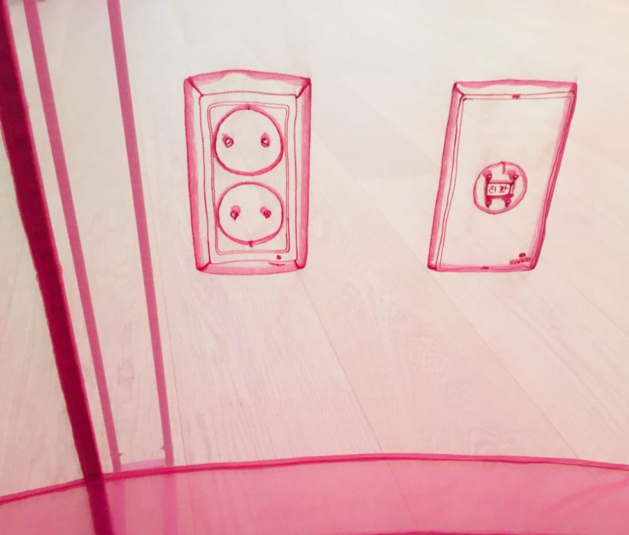 In de zogenaamde hubs die de kunstenaar samenstelt, zien we een aantal gangen van de huizen waarin hij heeft gewoond. Ze vormen het kunstwerk Passage/s. Het zijn neonkleurige doeken van polyester gewikkeld om roestvrij staal, replica’s van de gangen die je door de doorschijnende stof zowel van binnenuit als van buiten kunt bewonderen. Ze zijn aan elkaar genaaid en per adres verschillen ze van kleur, waardoor je je met iedere nieuwe kleur in een ander huis waant. Bij het creëren van de hubs heeft Do Ho goed op de details van de kamers gelet. Zo zijn er stopcontacten, lichtknopjes, deurklinken, ventilatieschachten, brandmelders en afzuigkappen die tot op de detail zijn nagemaakt, dingen die niet per se als eerste in je opkomen als je denkt aan thuis, maar desalniettemin in ieder huis aanwezig zijn. Zo ook in alle huizen waarin Do Ho Suh heeft gewoond, van Seoul en Londen tot aan Berlijn en New York. In het informatieboekje staat welk adres aan welke hub verbonden is, maar leuker is om door middel van de onderdeeltjes uit te pluizen welke gang in welk land thuis hoort. Aan de hand van de taal op de brandblusser bijvoorbeeld, of het kamerscherm dat zo typisch is voor de Zuid-Koreaanse leefomgeving.