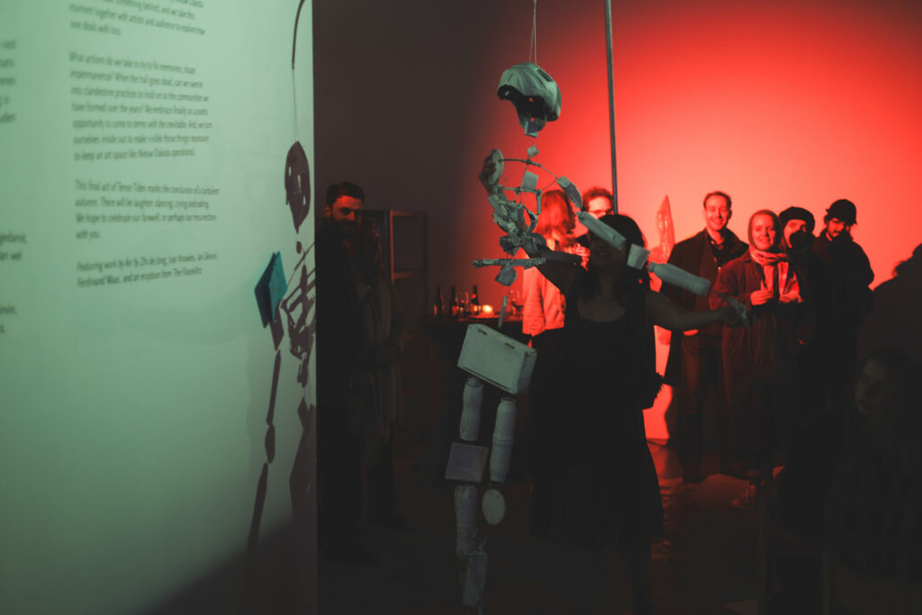 De openheid waarmee Nieuw Dakota haar mogelijk laatste dagen tegemoet trad in dit sluitstuk van het drieluik ‘Gespannen Getijden’, paste bij de ruimte voor experiment die de instelling al jaren kenmerkte. Die houding, gecombineerd met de aanstelling van een nieuwe directeur in 2021 – toen 27 jaar, een feit dat geen enkel interview destijds onvermeld liet – zorgde voor hernieuwde belangstelling. Deze avond was het wat rustiger dan op eerdere openingen. In de lucht hing iets dubbels: de ernst van de aankondiging op de uitnodiging mengde zich met hoop op een plotselinge redding.