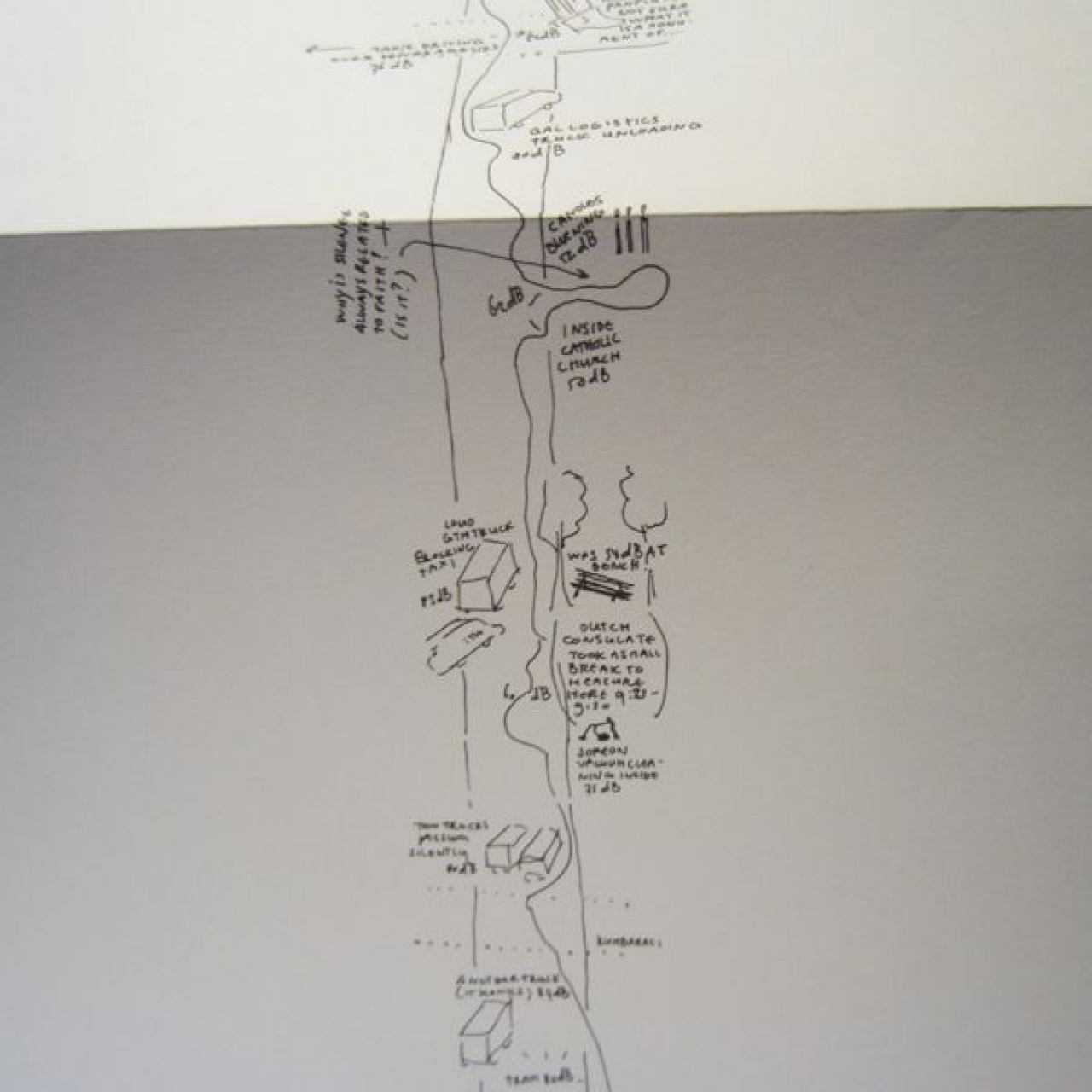 SvS ‘Ik heb natuurlijk wel geprobeerd een soort maateenheid voor stilte te maken. Ik denk dat ik altijd met ruimte bezig ben. Eigenlijk is het grappig dat je het dan over maat hebt, mentale ruimte eigenlijk. Er zijn veel dingen die invloed hebben op de architectuur, of de ruimte waar wij wonen maar die niet materieel zijn, dus die in zekere zin juist geen maat hebben, die wij met bouwkunde bijvoorbeeld ook niet leren, maar waarvan de meeste mensen zouden zeggen dat die veel bepalender zijn dan dingen die wel een maat hebben. De stilte, burenoverlast of het weer zijn hier voorbeelden van. In Delft zeiden ze altijd “meten is weten”, maar ik denk juist dat dat voor een groot deel onzin is. Omdat er factoren zijn die dus niet te meten zijn met bijvoorbeeld een liniaal of in een eenheid, maar die wel heel erg bepalend zijn.’