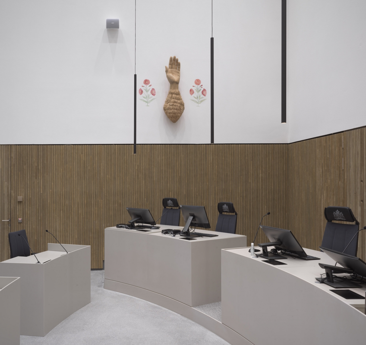 Dat is ook de reden waarom het proces voor mij bij die rechtbank moeizaam ging. Ik moest veel uitvoeren en alles is grotendeels vastgesteld omdat je voorafgaand je plannen moet presenteren. Terwijl ik gewend ben om het vooral ‘al makende’ uit te zoeken en in het moment werk te maken. Mijn werkproces zou ook veel sneller kunnen als ik bijvoorbeeld een model zou maken voor dat ik begin met het werken in hout. Maar ik heb een heel blok hout nodig om al beitelend het gaandeweg te vinden. Dat is echt mijn vorm om tot rust te komen en zo kan ik ook precies de juiste toon geven aan het werk.