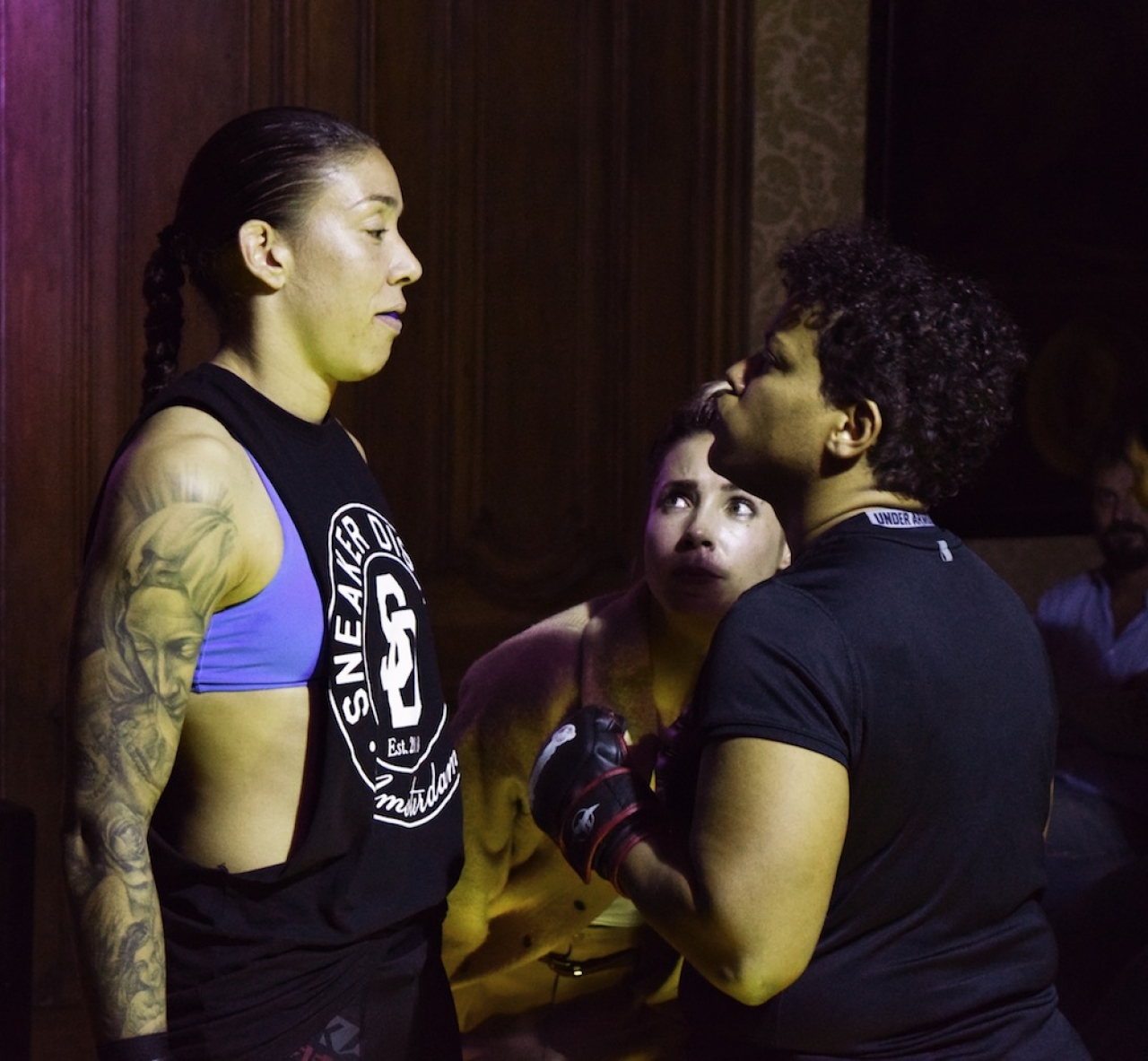 Door de organisatie van Museumnacht waren er routes georganiseerd, maar Motley besloot om zelf te zoeken in het donker van de nacht. Nachten zijn veelal ingeslapen en stil. Deze nacht niet, want tegelijkertijd biedt de nacht ruimte voor experimenten die het daglicht niet kunnen verdragen. Omdat de nacht bescherming biedt, het donker zorgt ervoor dat niet alles gezien wordt. Men durft meer in het zwarte licht van de nacht. Motley is opzoek gegaan naar deze experimenten. Naar de plekken die de nacht hebben omarmt. De avond begint in het Bijbels Museum waar een (unfixed) kickboksgala werd georganiseerd door de kunsttweeling Heske (Motley’s Heske) en Wieke ten Cate rondom het thema Hoogmoed. ‘Sinds liefdes worden afgenomen, beloftes worden gebroken, geld wordt verduisterd en vrienden worden opgelicht, worden handschoenen aan voeten geworpen, sabels uit schedes getrokken en pistolen uit hun holsters genomen. Worden kinnen geheven en nodigen handen met een klein verheven handgebaar uit om dichterbij te komen. Te naderen. Kom maar. Dichterbij. Kom maar. Tot ik je oogwit kan zien. Dichterbij nog. Tot je de kleur van de ogen kunt zien.’ Zo begint een half uur durende performance waar Kiki van Deursen de toeschouwer, die zie zij steeds liefkozend ‘interlectuelen’ noemt, innerlijk bevraagt naar waarom we toch zo graag naar gevechten kijken. De winnaar is een prooi, want wie wint kan enkel alleen nog maar vallen. Je moet je tegenstanders dankbaar zijn. Met die gedachten lopen we de donkere nacht dieper in.