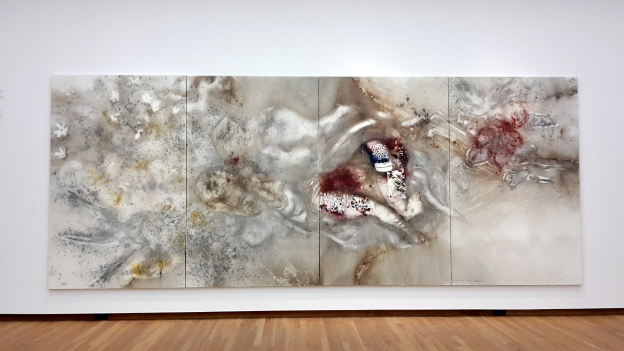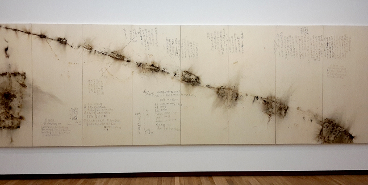 In plaats van doorgaans vrij saaie zaalteksten, die dikwijls ingewikkelde concepten in Jip en Janneke taal behelzen – omdat men tegenwoordig denkt dat een zin die langer is dan zeven woorden te ingewikkeld is, en ik nu met deze zin probeer te bewijzen dat dat wel meevalt – zijn de kunstwerken bij de solotentoonstelling van Cai Guo-Qiang in het Bonnefantenmuseum Maastricht omkleed met persoonlijke gedachten. (adem uit). Cai Guo-Qiang is een bijzonder leuke man kom je zodoende achter, met zijn blik wagenwijd open voor de buitenissige onderwerpen in onze wereld. Hij maakt kunst met vuurwerk, omdat – ja, wie houdt er nou niet van vuurwerk?- maar is tevens een zeer eloquent denker en schrijver. Een aanrader dus, deze tentoonstelling.