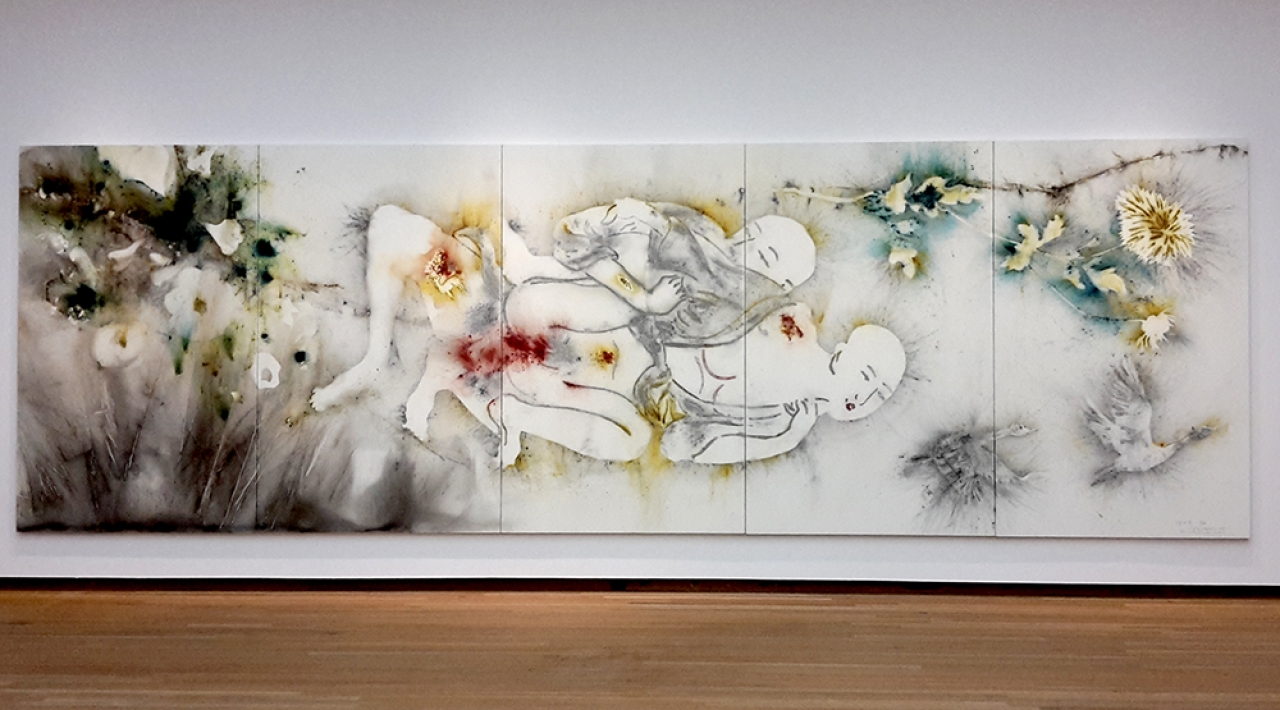 Cai Guo-Qiang: ‘Een gezegend kind is een kind dat krijgt wat het nodig heeft, wanneer het nodig is. Zo zijn ‘mijn schildersverhalen’ ontstaan. De reis door het schilderen is niet een reeks voetstappen van één persoon in de wildernis, maar een reis in gezelschap van vrienden, leraren en familie. Ze hebben allemaal naast me gestaan in mijn verschillende fasen: mijn grootmoeder, mijn vader, mijn vrouw, mijn kinderen, en anderen. Zij hebben mij beïnvloed en ik hen. Dit verhaal zet elke persoon in de schijnwerpers die achter mij heeft gestaan. Zo kan het publiek zien en daardoor kan men mij ook duidelijker zien.’