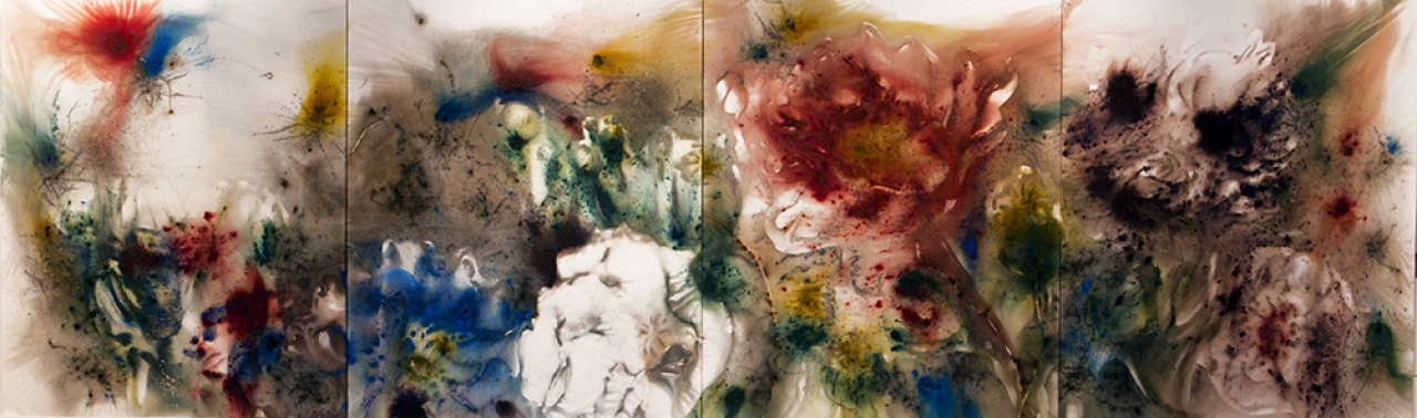 ‘Ik ‘ontplofte’ de leden van de Xiao Bai Hua theatergroep op zijden lakens. Ik probeerde het gevoel van levendigheid en jeugdigheid in de groep wanneer ze offstage waren te vangen, want dat raakte me zeer. Zijde golft op een elegante en geweldige manier en creëert een ander effect dan papier of doek. Ik koos voor dit onderwerp om de speciale kwaliteiten van deze stof: zijde is meer geschikt om deze zachte, lenige meisjes weer te geven.’