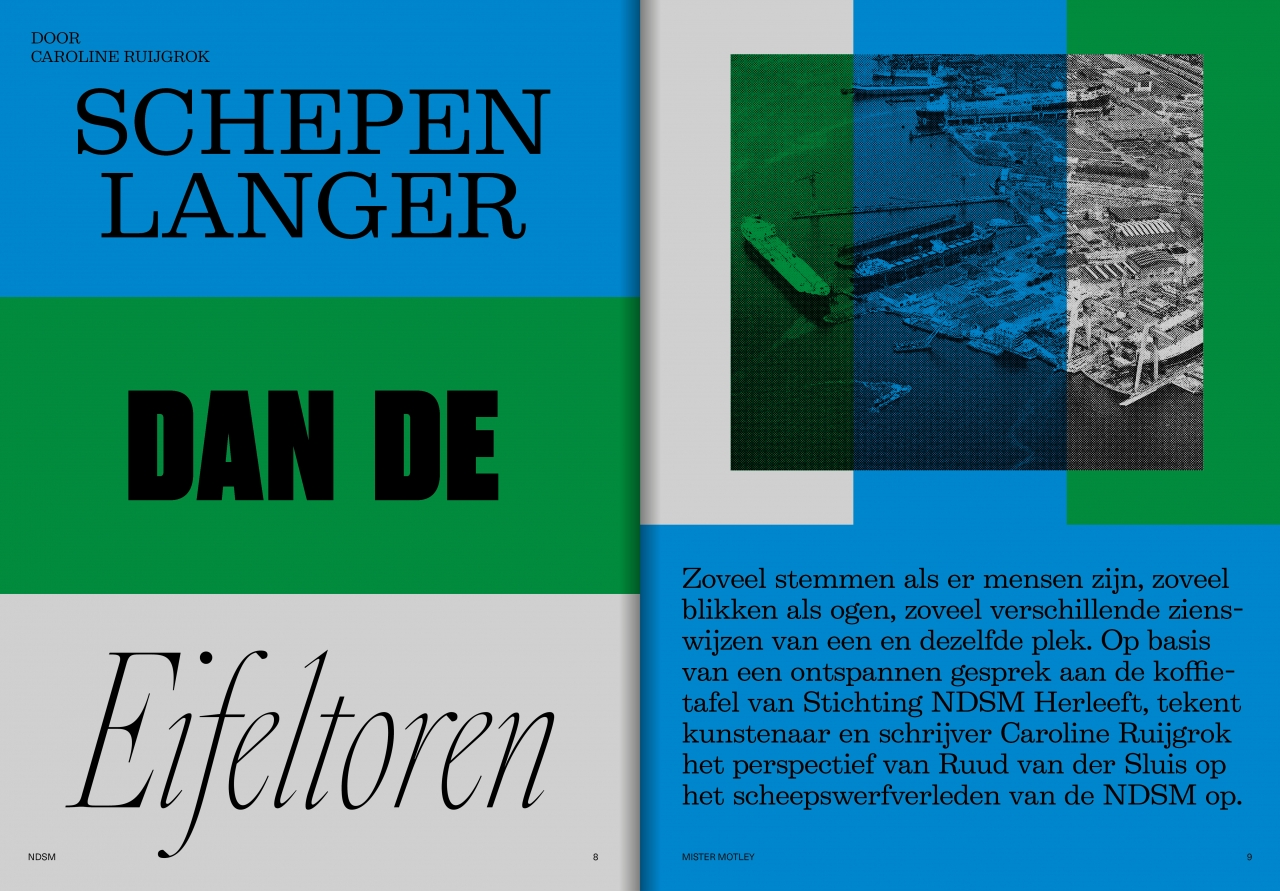 Stichting NDSM-werf en mister Motley besloten deze uiteenlopende, experimentele en altijd veranderende plek als uitgangspunt te nemen voor een kleurrijk tijdschrift. De ontwikkelingen op de