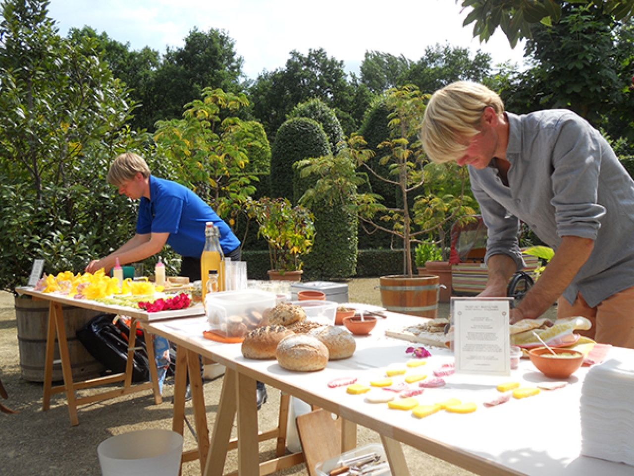 De Onkruidenier biedt bezoekers op een verwilderd gazon een picknick aan die bestaat uit gerechten die zijn samengesteld van onkruid uit de paleistuin. Hier kun delicatessen van onkruid eten (daslook, madeliefjes en kleefkruid) uit de paleistuin.