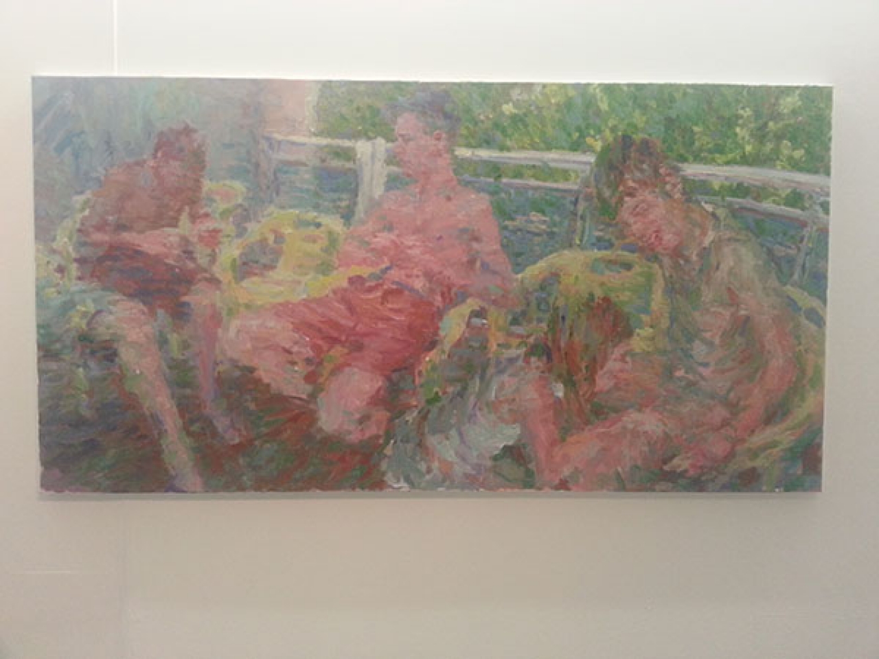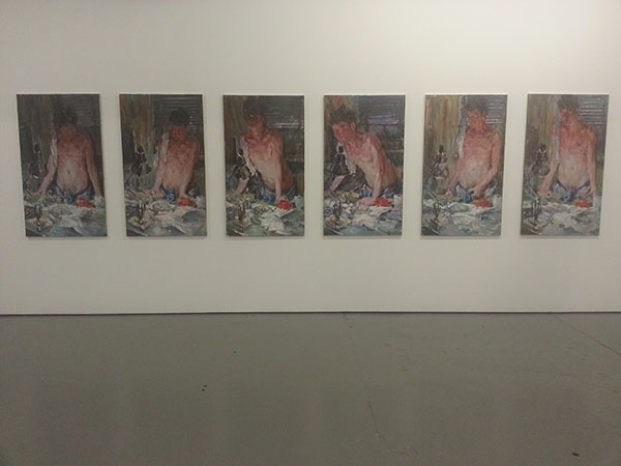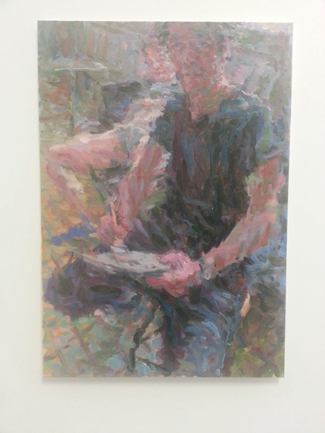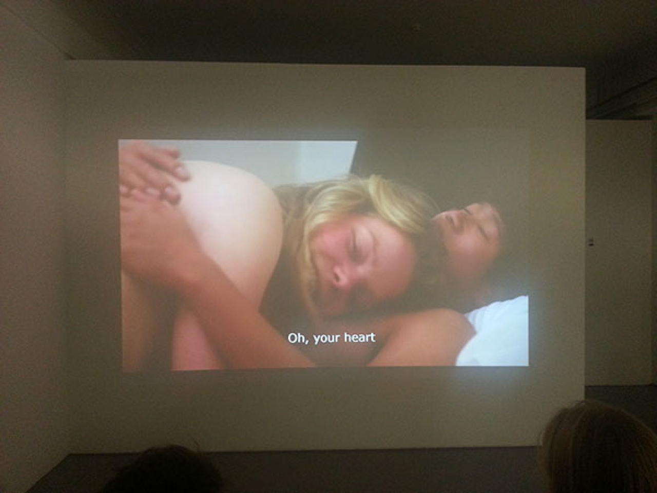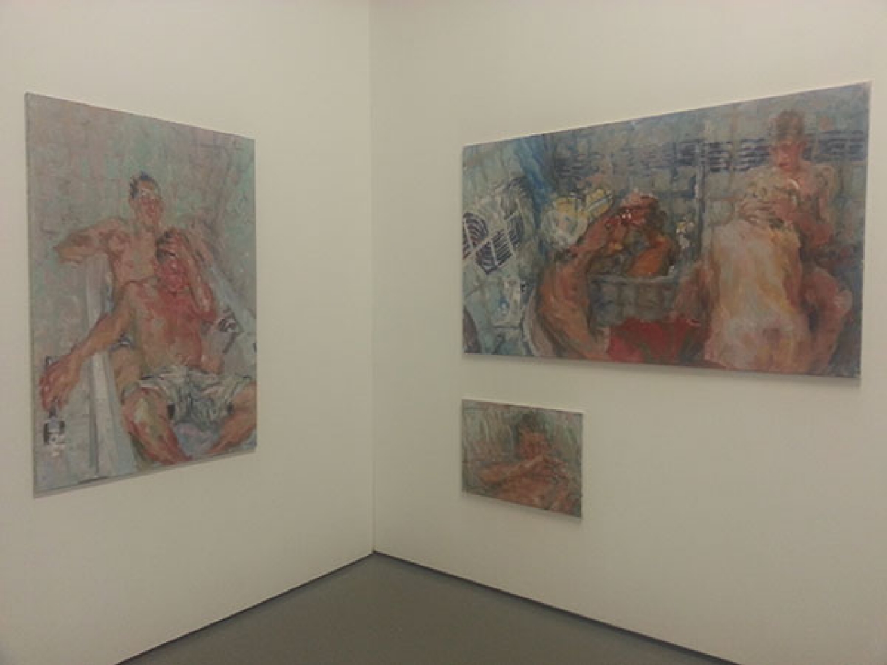 De eenmalige expositie bij NEST Den Haag op zaterdag 5 september toonde een intiem videowerk waar ik geboeid naar heb staan kijken: persoonlijke momenten worden met de toeschouwer gedeeld. Een verzameling foto’s siert de linkerhoek van de ruimte, deze ‘Drapery Studies’ vormen een verzameling met de meest uiteenlopende beelden. Verder is er een serie schilderijen te zien met blote lichamen die seksuele handelingen verrichten of intieme situaties tonen.