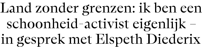 In haar tweede tekst voor de reeks Land zonder grenzen gaat Jam van der Aa in gesprek met kunstenaar Elspeth Diederix. Haar foto’s hebben Jam naar eigen zeggen meermaals laten zien hoe voor haar haar AuDHD-brein functioneert. 'Ze licht details uit die zichzelf toch niet loszingen uit het grotere geheel (bij moeite met centrale coherentie, een van de verklarende theorieën achter autisme wil een detail zich nog wel eens losstaand presenteren). Elspeth brengt, zoals in een van haar boeken Things as They Are, bijzondere verbanden aan tussen details waardoor die een opmerkelijke samenhang of betekenis krijgen.'