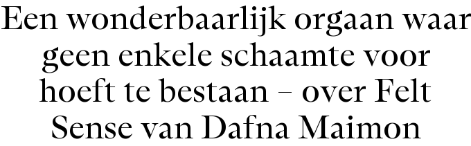 Wat betekent het om een lichaam te zijn? Samen met Lotte Dekkers, danser, docent en haptonomisch counselor, bezoekt Linde Keja ‘Felt Sense’ van Dafna Maimon bij Oyfo Kunstpodium. De aanwezige werken doen hen reizen door een darmstelsel, die de kunstenaar ziet als een diep filosofische plaats, die ons verbindt met onze omgeving en deze ook reflecteert en documenteert. Zoals ons hele lichaam dat doet.