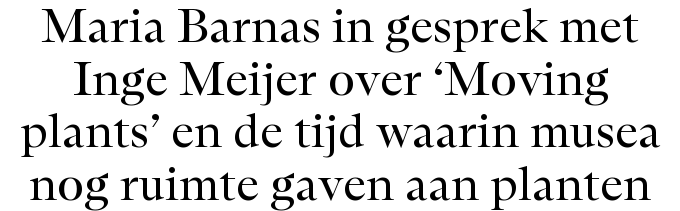 Oud-directeur van het Stedelijk Museum Amsterdam, Willem Sandberg, had de gewoonte had om planten die te groot waren geworden voor zijn woning in het museum te plaatsen. Hij noemde dit ‘de entree van de natuur in het museum’. Eerder deed kunstenaar Inge Meijer al onderzoek naar deze wonderlijke symbiose van de kunst- en de plantenwereld. Met haar nieuwe boek richt ze haar research op archiefbeelden met planten uit het Museum of Modern Art (MoMA) in New York. Maria Barnas interviewde Meijer over haar fascinatie. ‘We hebben een product gemaakt van planten. Maar we zijn afhankelijk van hun levens. Maar zijn we ons daarvan bewust? Tonen we ooit dankbaarheid?’