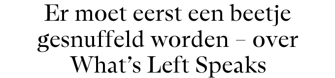 Vorige week opende bij Das Leben am Haverkamp in Den Haag de tentoonstelling What’s Left Speaks van Gaia D’Arrigo, Felix Bell en Nuno Lobo. Wietske Flederus sprak met de kunstenaars en schreef een essay naar aanleiding van de kennismaking die ze had met de wereld die Lobo, Bell en D’Arrigo gecreëerd hebben. ‘Dystopische scenario’s hebben iets weg van de spanning van enge films. Je durft niet te kijken maar wilt ook niks missen.’