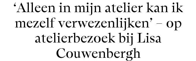 Iedere voorstelling van Lisa Couwenbergh verrast door de precieze manier van schilderen van de op het oog eenvoudige taferelen die in een vreemd aandoend illusionisme zijn uitgewerkt. Het is een persoonlijke wereld: ‘Dit is wie ik ben. Voor ik kon zeggen over mijn werk “Dit is van mij”, heb ik een lange weg afgelegd.’ Alex de Vries ging op atelierbezoek bij Lisa Couwenbergh.
