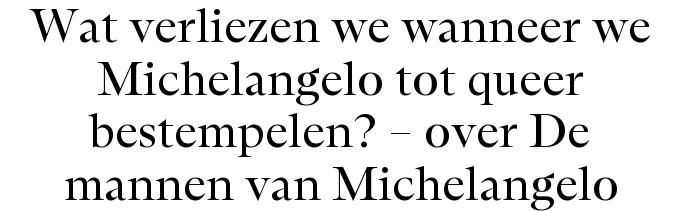 De mannen van Michelangelo in Teylers Museum onderwerpt een van de grootste kunstenaars uit de geschiedenis aan een queer lens. Maurits de Bruijn bezocht de tentoonstelling en vraagt zich wat af wat we verliezen wanneer we een ruimschoots gecanoniseerde kunstenaar als Michelangelo met een anachronistische blik bekijken en hem een identiteit aanmeten waar geen sprake van was toen de goede man nog leefde. ‘Het lastige daaraan is dat de heteronormatieve blik op dit werk alsnog geldt als uitgangspunt, en dat de vermoede homoseksualiteit van Michelangelo het karakter van een ontmaskering krijgt. Een verdenking waar bewijslast voor moet worden gevonden in de brieven die hij schreef, de motieven in zijn werk en de wijze waarop hij jongelingen op het papier gestalte gaf.’