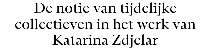 Annosh Urbanke onderzoekt historische en hedendaagse kunstcollectieven. In Rotterdam ging ze bij Katarina Zdjelar op studiobezoek. In haar praktijk onderzoekt ze culturele, gender- en politieke identiteiten binnen verschillende media. Opvallend is dat Zdjelar vaak een werkvorm opzoekt waarbij ze telkens mensen samenbrengt.