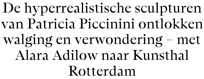 Voor deze editie van De ontmoeting bezoekt Fabienne Rachmadiev met dichter en schrijver Alara Adilow de solotentoonstelling Metamorphosis van Patricia Piccinini in Kunsthal Rotterdam. Ze stappen een een universum binnen van machines en cyborgs, van imaginaire geslachten zonder sekse, van dier-mensen en mens-dieren, van harigheid, gladheid, geribbeldheid, hardheid en zachtheid.