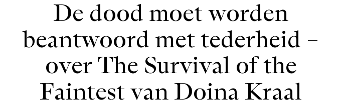 De droefenis die op de dood volgt, dempen we met rituelen. Met fluisteringen, zorgvuldig gearrangeerde boeketten, passende gedichten. Missen als een ronde vorm in het Stedelijk Museum Schiedam laat eenzelfde tederheid zien, die tot een hoogtepunt komt in The Survival of the Faintest van Doina Kraal, zag Maurits de Bruijn. ‘Het beeld heeft wat weg van een explosietekening, een technische tekening van een machine of object, waarbij de onderdelen uit elkaar zijn getrokken om te laten zien hoe ze in elkaar zitten. En dat is het natuurlijk ook. Want wie The Survival of the Faintest tegemoet treedt, kan niet ontkennen dat er een bom moet zijn afgegaan, dat zich hier een ramp heeft voltrokken, dat de lijm is opgelost.’