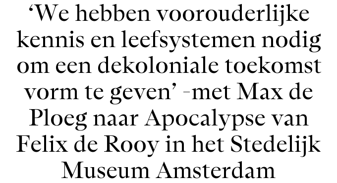 Het Stedelijk Museum Amsterdam presenteert vijf decennia kunstenaarschap van multitalent Felix de Rooy met film, theater en beeldende kunst in talloze verschijningsvormen van schilderijen tot assemblages en van collages tot wandkleden. De Rooy onderzocht thema’s die op dit moment nog steeds actueel zijn, waaronder de doorwerking van het koloniale verleden, alledaags racisme en de betekenis van Afro-Caribische en queer identiteiten binnen de kunst. Leana Boven bezocht Apocalypse met programmamaker Max de Ploeg. ‘Deze instituten zijn inherent koloniaal.’
