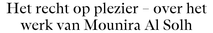 A land as big as her skin van Mounira Al Solh in het Bonnenfanten is overdonderend in kleur, materiaal en verhalen. Ze vertelt gelaagde verhalen over het leven in oorlog of over het (moeten) verlaten van geboortegrond op zoek naar een betere toekomst. Berber Meindertsma signaleert dat de vrouwen in Mounira’s installaties mensen van vlees en bloed zijn, die dansen, honger en dorst hebben – en soms gewoon naakt willen chillen op bed met een shisha. ‘Ze vragen niet om medelijden maar claimen hun recht op plezier.’