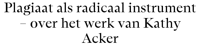 Een jaar lang staat een aantal zalen van West Den Haag in het teken van het grensoverschrijdende oeuvre van de avantgardistische schrijfster Kathy Acker (1947-1997). Ze plagieerde er op los, zette het werk van anderen in om te morrelen aan de beperkingen van identiteit en om seksuele macht te ontleden. Obe Alkema is groot bewonderaar maar vraagt zich in zijn bespreking van de tentoonstelling ook af wat de keerzijde is van al die transgressie en radicaliteit.