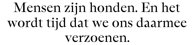 Maurits de Bruijn bezocht met zijn hond Boter één van de door Eva Meijer geïnitieerde Dog Dinners in Mediamatic, waar hond en mens exact dezelfde gangen aten, aan dezelfde tafel, op dezelfde hoogte. ‘Grenzen werden, net als de glazen, verkend en even later omvergeworpen.’