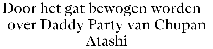 Dagmar Bosma bezocht Chupan Atashi’s solotentoonstelling Daddy Party آن نافه مراد که میخواستم ز بخت درچین زلف آن بت مشکین کلاله بود in Metro54 en zag de performance New Animals. ‘De performers bewegen langzaam van elkaar weg, kruipend op handen en knieën, en stoten kirrende geluiden uit, die soms tussen huilen en lachen in zitten. Hebben deze dieren pijn, of zijn ze hitsig?’ Dagmar voelt verwantschap met deze wezens en koppelt het werk aan zijn zoektocht naar een daddy en een verlangen naar desintegratie.