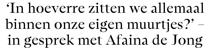 Afaina de Jong ontwierp verschillende tentoonstellingen in binnen en buitenland zoals Blueprint: Whose Urban Appropriation is this in Tent Rotterdam, de Slavernij tentoonstelling in het Rijksmuseum, de tentoonstelling Kirchner en Nolde: Expressionisme. Kolonialisme in het Stedelijk museum, Etel Adnan: Colour as Language in het Van Gogh en nog veel meer. Afaina sprak met Rita Ouédraogo over de keuzes die zij maakt en hoe zij zich verhoudt tot de ‘muren’ van de werelden waarin zij zich begeeft.