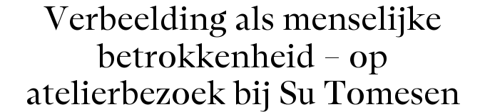 De projecten van Su Tomesen zijn ingrepen in het bestaan. Ze sluit aan bij een manier van werken die we kennen sinds de opmerkelijke acties van Fluxus-kunstenaars, waarbij de kunstenaar bemiddelaar is tussen de deelnemers die doorslaggevend zijn voor de uitvoering van een menselijke uitwisseling van creativiteit, plezier, verwondering en verbeelding. ''Ik en de ander' is een gegeven dat steeds meespeelt in mijn werk. Verbinden, ontmoeten, praten, interacteren, discussiëren zijn onderdeel van mijn installaties waarin publiek of mensen deel zijn van mijn werk.'