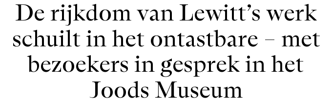 Het werk van Sol LeWitt werk roept vragen op die nog altijd actueel zijn. Over wat nou eigenlijk het werk is, wie de maker is, en hoeveel waarde we aan kunst toekennen. Sifra Coulet bezocht de overzichtstentoonstelling van de grondlegger van de conceptuele kunst in het Joods Museum en ging met bezoekers in gesprek.