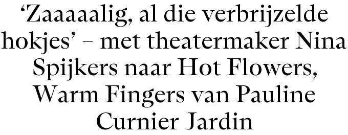 ‘Ik vind dit zo vet aan deze tijd. Dat de vrouw op andere manier wordt neergezet in kunst. Dat het niet meer alleen de schreeuwende hysterie is, of alleen maar een lekker wijf. De vrouw is veel diverser, gelaagder, de méns is veel diverser […].’ Samen met theatermaker Nina Spijkers bezoekt Lisanne van Sadelhoff de tentoonstelling Hot Flowers, Warm Fingers van Pauline Curnier Jardin, die voorbij gaat aan stereotypering.