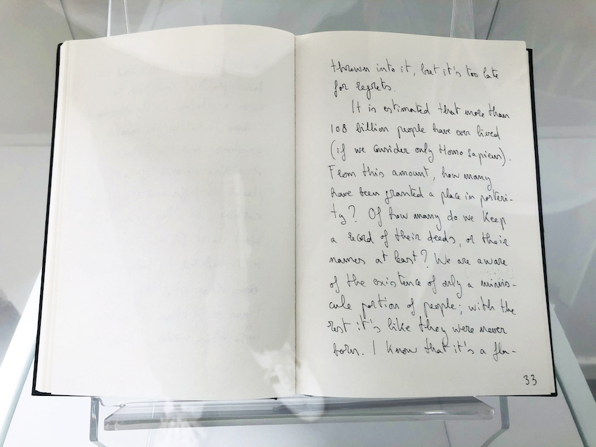 Alex de Vries bezocht het atelier van David Maroto. Voor hem is schrijven een beeldend middel waarmee hij zich als kunstenaar uitdrukt. Zijn werk bestaat uit de verbeelding van daadwerkelijke handelingen die we uitvoeren om anderen te bereiken, om ze aan te raken en om door te geven wie we zijn om niet te worden vergeten. ‘Ik heb geen kinderen en dus geen genesis. Ik kom ergens uit voort dat verdwijnt als ik er niet over schrijf. Ik moet de herinnering levend houden.’