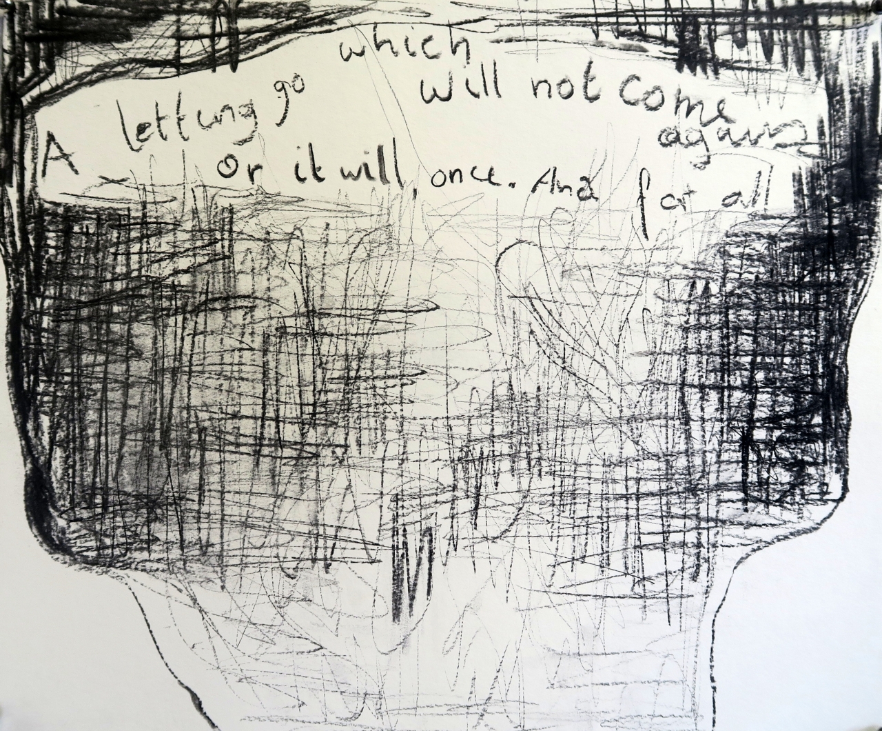 Het feitelijke ‘reizen’ in de totstandkoming van tekeningen heeft bij mij soms tot gevolg dat er een gedicht ontstaat. Dat schrijven vertoont overigens wel vaak een parallel met het tekenen. Veelal moet de basis van het werk er direct staan, het betekent voor wat de tekening betreft, dat er soms meerdere kleinere tekeningen op een dag ontstaan. Met het schrijven van een gedicht is het niet veel anders, dat wil zeggen die basis moet er ook in een keer zijn. Als ik teveel moet nadenken over of iets wel goed is, kan ik het beter vernietigen. ‘Break down and break out”, schreef de Ier John McGahern. Bijna een variant op wat die andere Ier Samuel Becket zei: Fail again, fail beter.