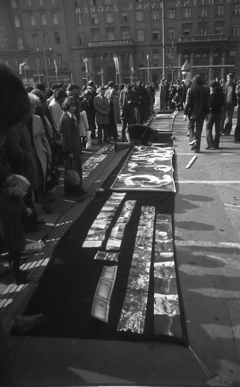 In Zagreb organiseren de kunstenaars Boris Demur, Željko Jerman, Vlado Martek, Mladen Stilinović, Sven Stilinović en Fedor Vučemilović onder de naam van het kunstcollectief ‘Group of Six Artists’ (niet te verwarren met Belgrade Six) vanaf 1975 ‘tentoonstellingsacties’ uit. Ze denken na over hoe kunst kan integreren in het alledaagse met het idee om kunst te ontdoen van het mystieke en de toeschouwer veel meer deel uit laten maken van kunstwerken. De tentoonstellingsacties bestaan uit een zorgvuldig uitgewerkt plan waarbij ze locaties selecteren die de verschillende vormen van het stadsleven representeren: het stadscentrum (Trg Republike), een plaats voor ontspanning en wegkomen (het strand van de rivier Sava), een nieuwe woonwijk (Sopot), een historisch deel van de stad (Jezuitski trg) en een onderwijsplek (faculteit van Filosofie). Tijdens deze acties staat het idee van de relatie tussen ‘mediator’ (de curator of bemiddelaar), de realiteit en het concept van de kunstenaar en de kijker centraal. Het collectief brengt kunst buiten de kaders in openbare ruimtes en het publiek is niet meer alleen waarnemer van hun werk.