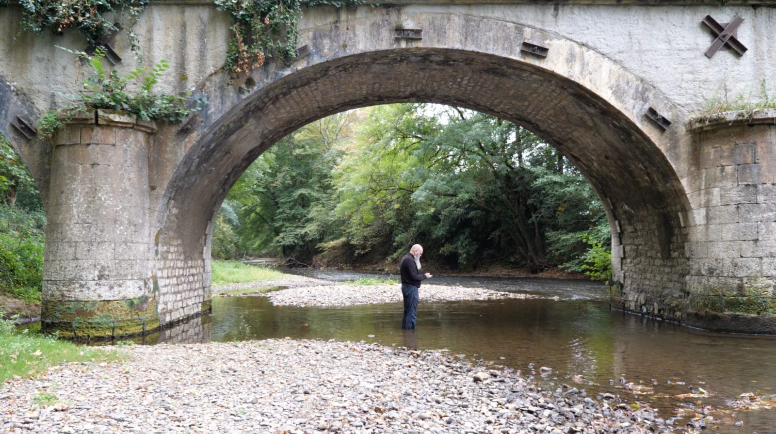 ‘In september 2021 reisde ik met mijn auto naar de art-residency AADK in Spanje. Ik besefte dat deze reis voor mij niet alleen een noodzakelijke verplaatsing was, maar ook betekenis in zichzelf kreeg. In veertien dagen reed ik, meanderend, van Dordrecht naar Murcia. Onderweg zocht ik naar stromend water. Die zoektocht bepaalde mijn route: rijdend langs wateren, de zee, beken en rivieren. Tegenover al dat water stond ik enige tijd, roerloos, kijkend naar de stroming.