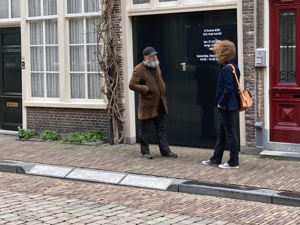 ‘Ik organiseer dergelijke activiteiten nog steeds zoals het Nieuwstraat Festival, een eendaags festival in de straat waar ik woon in Dordrecht. Niemand weet dat er een festival plaatsvindt en interpreteert wat er gebeurt niet als artistieke handelingen. Een idee wordt een voornemen dat wordt uitgevoerd. Het is niet de bedoeling iets te laten materialiseren in tastbare zin. Juist door afstand te nemen van de betekenis wordt het een beeldende handeling.’