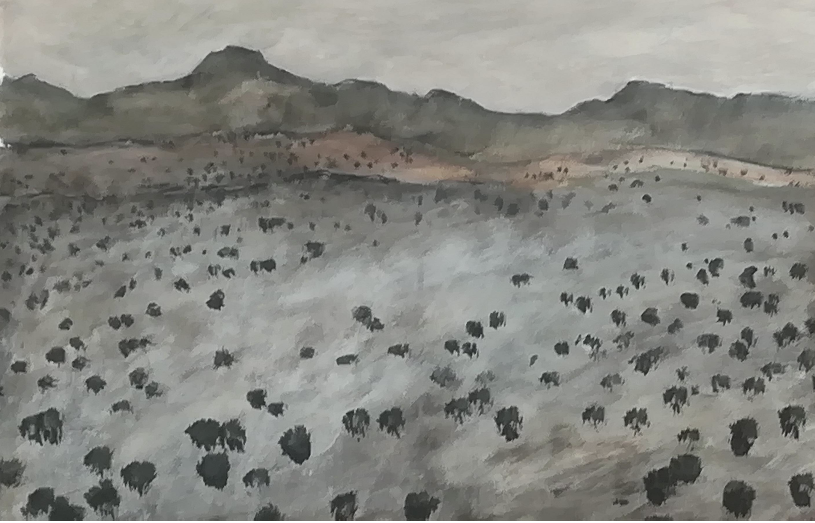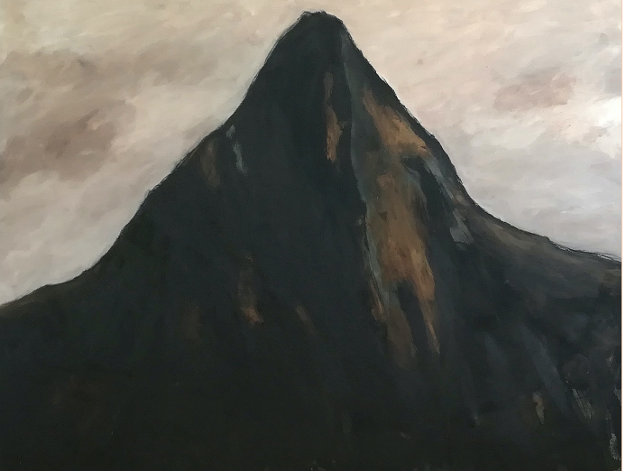 De berg- en woestijnlandschappen van Frans van den Boogaard zijn het werk van een schilder die de materie waarmee hij werkt voor zichzelf laat spreken, in een ingehouden sfeer waarin iets opdoemt wat je niet thuis kunt brengen. De donkere vlekken in zijn gebergte zijn de acacia’s die je als wezens tegemoetkomen. Frans van den Boogaard is er niet op uit om thuis te komen in zijn schilderijen, hij maakt ze om uit te kijken naar het verschiet. In de vale verte is een spoor van kleur en leven te vinden. In La Souleille, wat ‘de zon’ betekent, zit licht in het leven.