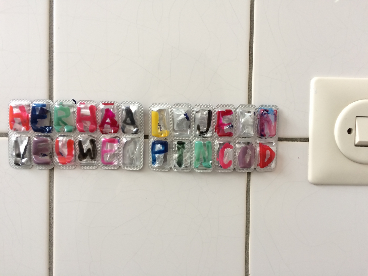 1) Ga na waar je jezelf* regelmatig aan zou wil herinneren in je huis of op je werkplek. Bijvoorbeeld: een praktische of idealistische opdracht aan jezelf, of een mooie zin die je ergens hebt gelezen of opgevangen, of iets waar je dankbaar voor bent