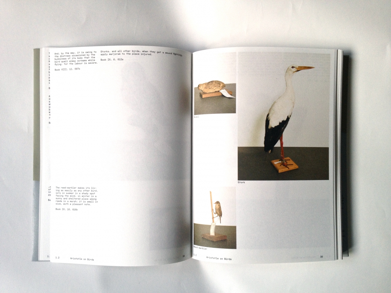 Dat Geene en de Nooy een onderzoekende manier van kijken hebben, spreekt ook uit de collectie vogelflatsjes, die zij ordenende op basis van afleesbare vliegsnelheid en een overzicht waarin zij alle onderdelen van een enkel vogelnestje uitleggen op een manier die even overzichtelijk is als een Ikea handleiding. In Ornithology komen nauwkeurigheid en nieuwsgierigheid op een heel plezierige manier samen. Waar Geene en de Nooy de ene keer stilletjes een bos doorkammen om een stilzittende vogel te treffen, testen zij de reactiesnelheid van een vogel in de achtertuin door er iets naartoe te gooien.