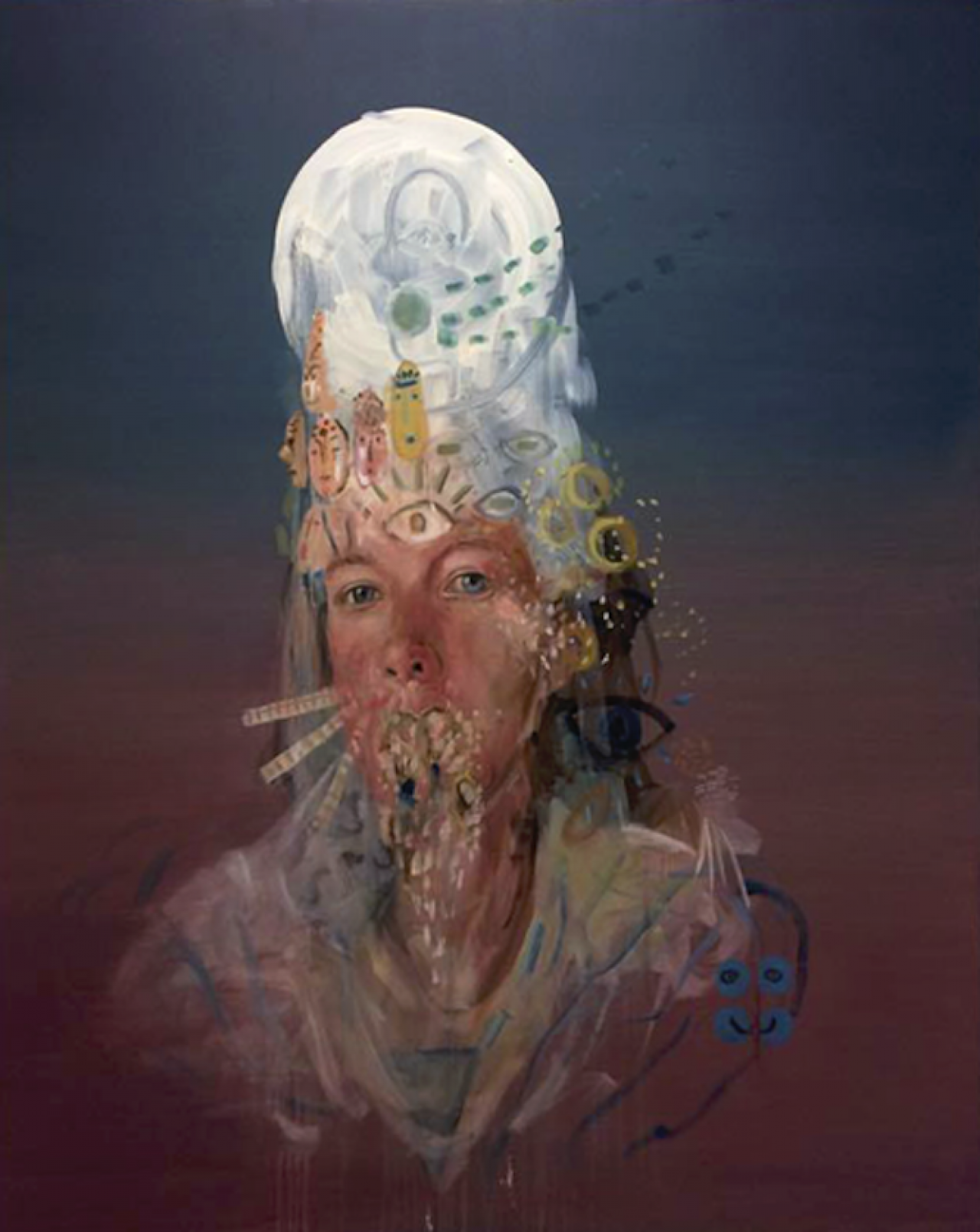 Marguertite de Geus maakt met haar schilderijen van mensen die binnenste buiten worden gekeerd nu eens niet een statement. Al wordt dat wel van kunstenaars verlangd; dat zij zich uit te spreken over de intenties en beweegredenen van hun werk. Haar schilderijen zijn duister en toch lichten ze op. Ze laten iets zien waar we geen weet van hebben en we voelen dat we aan die onwetendheid zijn uitgeleverd. Ook wat we niet kunnen verklaren doet zich voor in wie we zijn. Het komt van binnenuit en zoekt zich een weg naar buiten. Eerder slikken we het nog in dan dat we het uitspugen, maar het is onontkoombaar. We dragen de dood in het gezicht. We baren het monster. Tegelijkertijd biedt haar werk een feestelijke aanblik van onze teloorgang. We gaan alleen maar dood, omdat we leven.