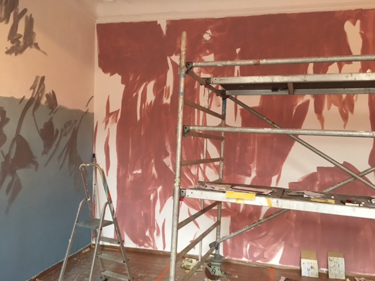 Tijdens het lezen van dit boek in de zomer van 2012 ontstond bij kunstenaar Gijs Frieling het verlangen dit verhaal te gebruiken voor een tentoonstelling met muurschilderingen. Nu, bijna vijf jaar later, nodigt hij 19 kunstenaars uit in Marres Maastricht en beschildert met hen alle zalen, gangen, plafonds, de vloeren en trappen van het monumentale pand. Het resultaat is een overweldigende visuele opera, waar kleuren en stijlen oorlog voeren en vrede sluiten. Verwacht een futuristische supermarkt, een stuk bewaard oerbos, een virtuele detentieruimte een live festival anno 2050 in verf op de muren aangebracht.