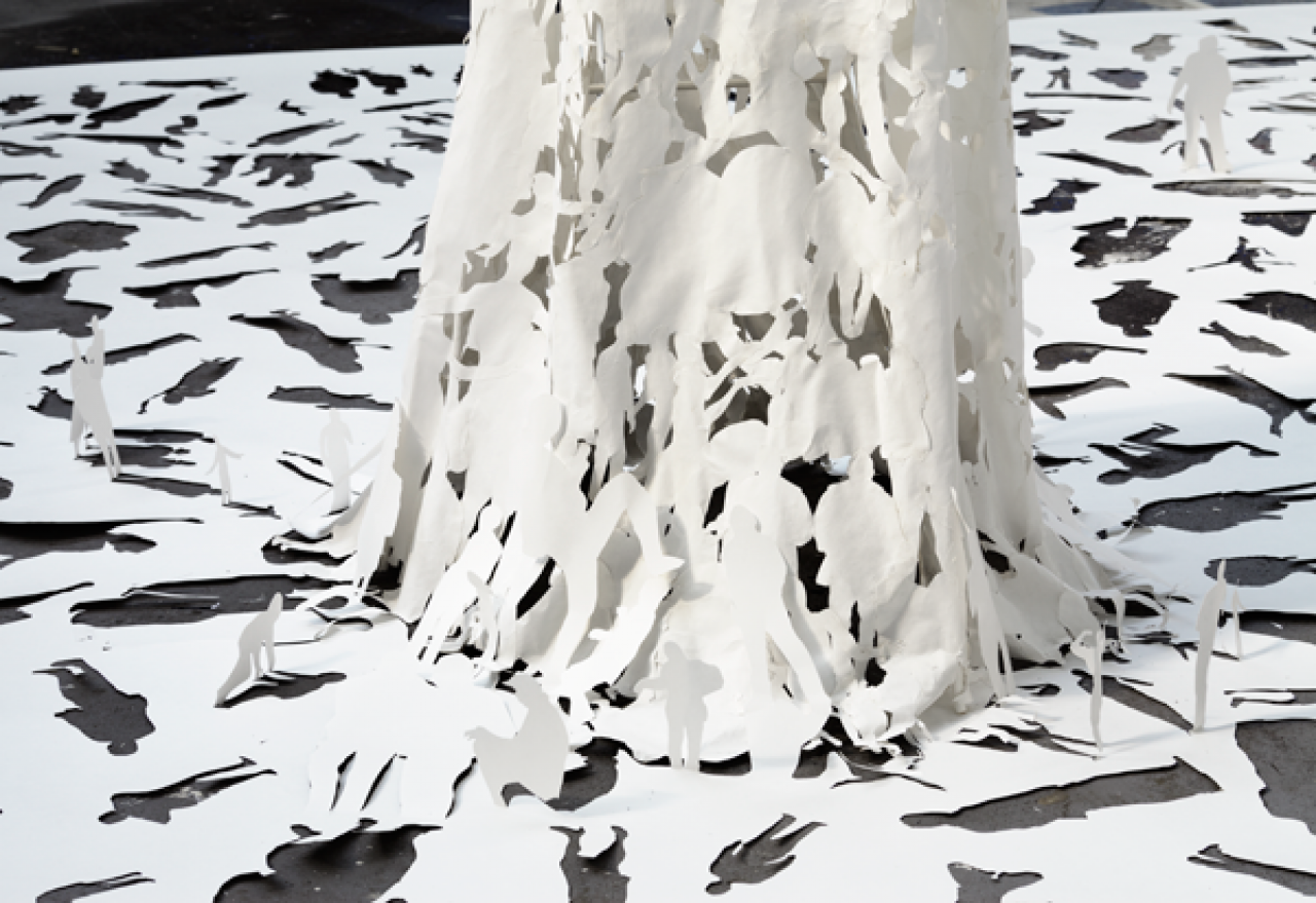 Van 7 juli tot en met 27 oktober toont CODA Museum het recente werk van 39 kunstenaars en vormgevers hoogtepunten in de papierkunst. Een aantal kunstenaars laat zich, op zeer uiteenlopende wijzen, inspireren door het hergebruik van papier en karton. Terwijl de een papierafval op straat fotografeert en die grote beelden vertaalt naar kleine objecten en sieraden, verzamelen anderen hetzelfde papier- en kartonafval om te verwerken tot kunstenaarsboeken, gebruiksvoorwerpen, meubilair, sieraden en kledingstukken. Zo maakt Movana Chen (China, 1975) ‘kledingsculpturen’ van papierdraden, die ontstaan zijn nadat ze oude tijdschriften door een shredder gehaald heeft. Ze noemt deze draagbare, papieren kunststukken body containers.