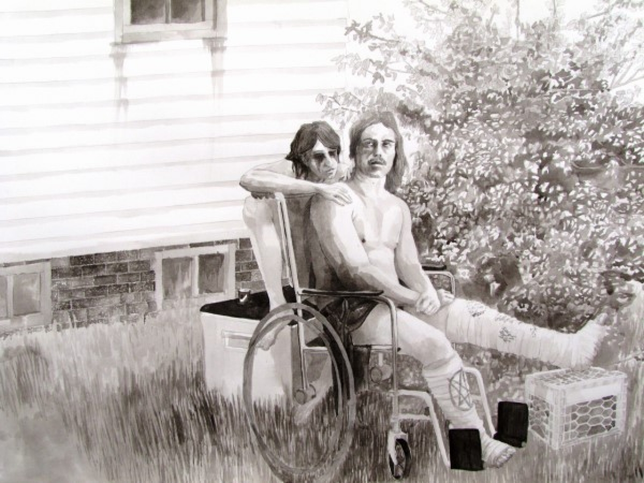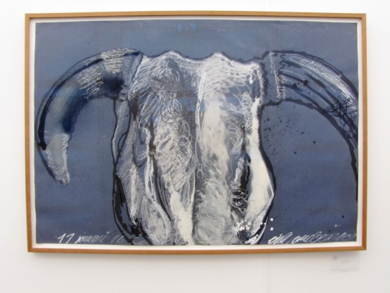 Ik bewonder tekeningen van houtskool, potlood, pen, stift, krijt, acrylverf, aquarel, olieverf, collage en mixed media. Van imponerend groot tot een zeer intiem en bescheiden formaat. Met overweldigende felle kleuren, of ingetogen zwart-wit schetsen. Prijzen van 3500 euro, tot slechts 10 procent hiervan. Kunst van eigen bodem, maar ook uit Zwitserland en Japan. Werken die bestaan uit grote kleurvlakken, of juist vol verborgen details. De samenhang tussen de zo verscheidene kunstwerken zit ’m in de drager van de werken, namelijk papier. Een geliefd materiaal onder kunstenaars dat vele mogelijkheden kent.