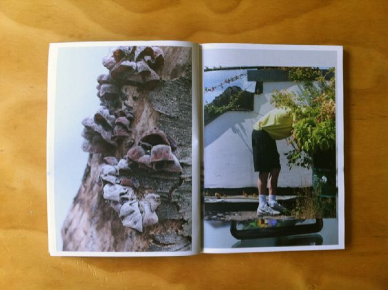 Het blad begint zijn eerste paar pagina’s direct spectaculair met foto’s gemaakt door Wolfgang Tillmans: twee hele depressieve kamerplanten die letterlijk het plafond bereikten en nu treurig hangen, een vensterbank met onkruid in en plantenbak, een man met sportgympies, korte broek en vla-gele polo die zijn hoofd achter een grote bos met wilde aardbeien heeft gestoken (waarschijnlijk om ze te kunnen plukken én omdat het een hilarisch beeld oplevert). Dit zijn geen foto’s die je in de ‘LandIdee’ bij de huisarts tegen komt, de foto’s van Tillmans zijn een twijfelachtige ode aan het tuinieren en vergeten planten.