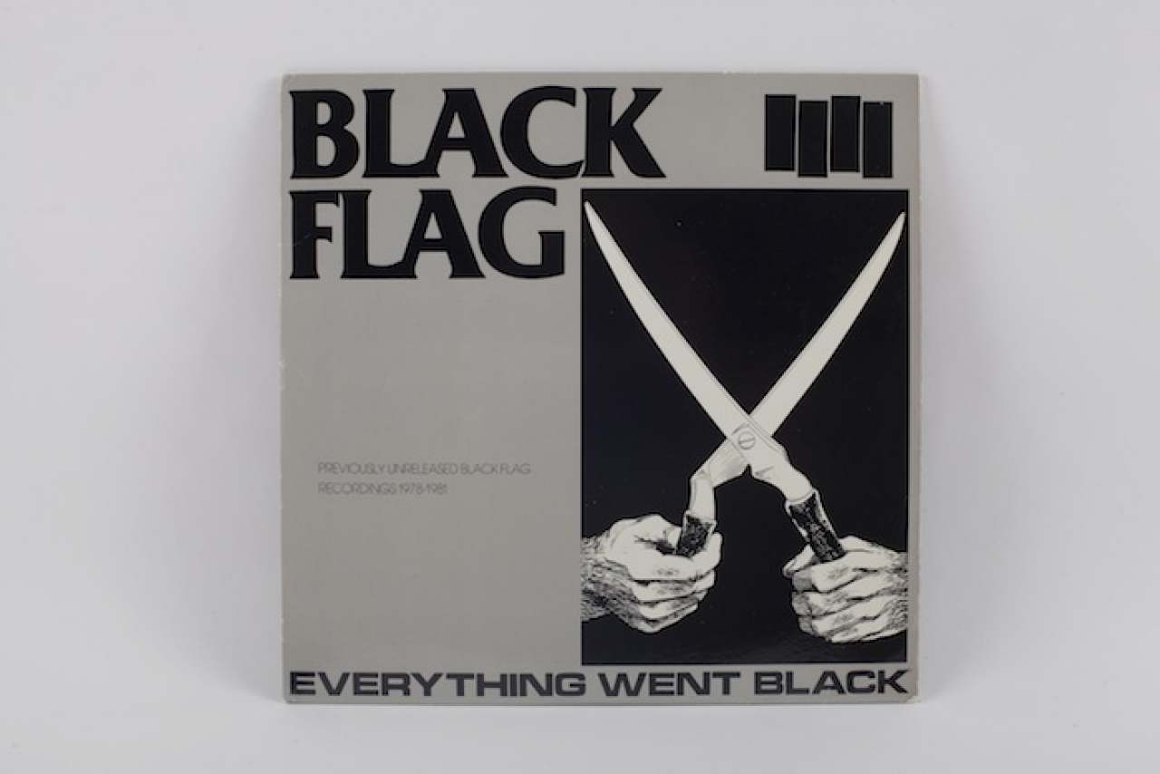 Iets verderop is de wand en een hele trits vitrines gewijd aan het werk van Raymond Pettibon. Flea, de bassist van de Red Hot Chili Peppers, ontdekte zijn artwork al begin jaren tachtig in de straten van Los Angeles: “I remember walking around Hollywood and seeing Raymond’s flyers and being like, ‘What the fuck is that?’… Those flyers made me feel like something is going on and it’s romantic and it’s mysterious and it’s heavy and I don’t know what it is but I wanna know.” Pettibon, ‘the punk with a pencil’ was ooit bassist en naamgever van de Californische punkband Black Flag. Met bassen was het al snel gedaan, maar hij ontwierp wel het legendarische logo voor de band. In de VS zijn deze vier verspringende zwarte balkjes, het op één na meest getatoeëerde symbool aller tijden. Op nummer een staat ironisch genoeg de swastika.
