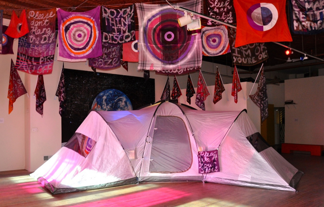 Baggesen exposeert over de hele wereld met een installatie die bestaat uit een tent, kleden en spandoeken. De tent is lilakleurig en het model is terug te zien op iedere doorsnee camping. In het hoogste punt van de binnentent siert een discobal. Een referentie naar de discomuziek waar al onze moeders van houden. In en rondom de tenten hangen spandoeken met leuzen die zowel humoristisch als treffend zijn. ‘’Put the mom in moma’’, “What happens to the avant-garde when the mother laughs?” In de tent kunnen bezoekers zitten, luisteren naar haar thesis, boeken lezen uit haar bieb en het gesprek met elkaar aan gaan over het moederschap.