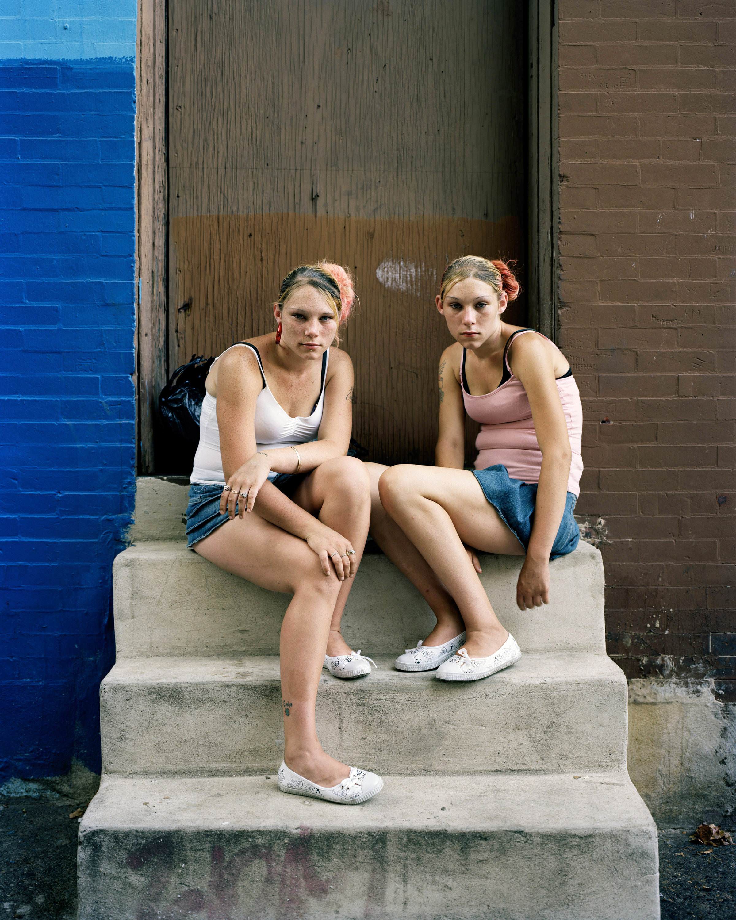 22. Tic Tac and Tootsie By Jeffrey Stockbridge Carroll (left) and Shelly (right) standing on the corner opposite the Huntingdon Park El Station along Kensington Avenue. At the time I made this photograph, the sisters were 20 years old and had been living on the street for one year www.kensingtonblues.com