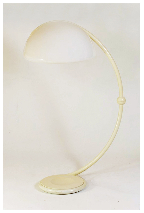 1. Lamp ‘Serpente’, ontworpen door Elio Martinelli. Aan de basis van de de slangvormige buis bevindt zich een opening met elf verborgen objecten.