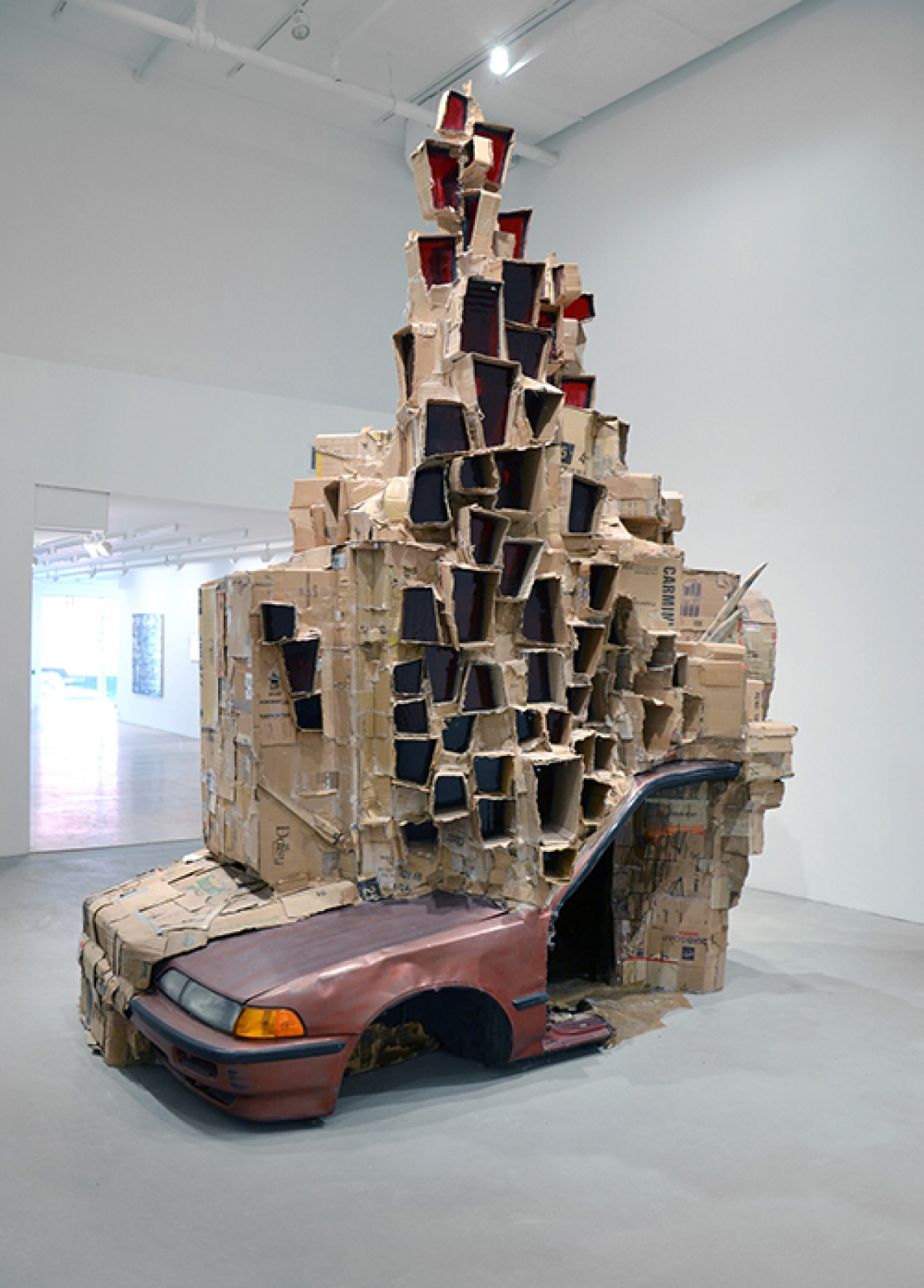 Rob Voerman. Architectuur, vergankelijkheid en deconstructie staan centraal in Voermans tweedimensionale werk en sculpturen. Zijn grafische werken, tekeningen, aquarellen en schilderijen tonen doorgaans vergane landschappen met utopische bouwwerken uit een onbekende postapocalyptische wereld. Zijn tekeningen bevatten veel futurologische bol- en cirkel-vormige bouwwerken, dikwijls in kronkelige vormen, zonder begin of einde. De vreemde bouwwerken die op absurde wijze zijn gemaakt van ‘onmogelijke’ materialen hebben een vijandig en buitenaards effect op de toeschouwer.